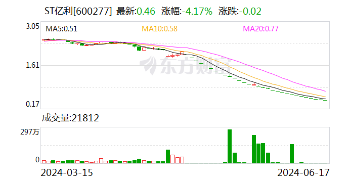 6月17日,ST亿利链接跌停,总市值16.38亿元。