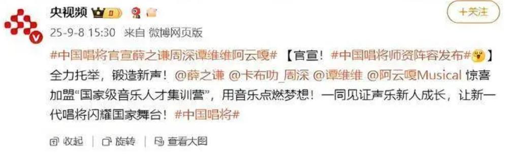 早两个月,她致使被央视邀请,在全新音乐综艺《中国唱将》中担任导师。