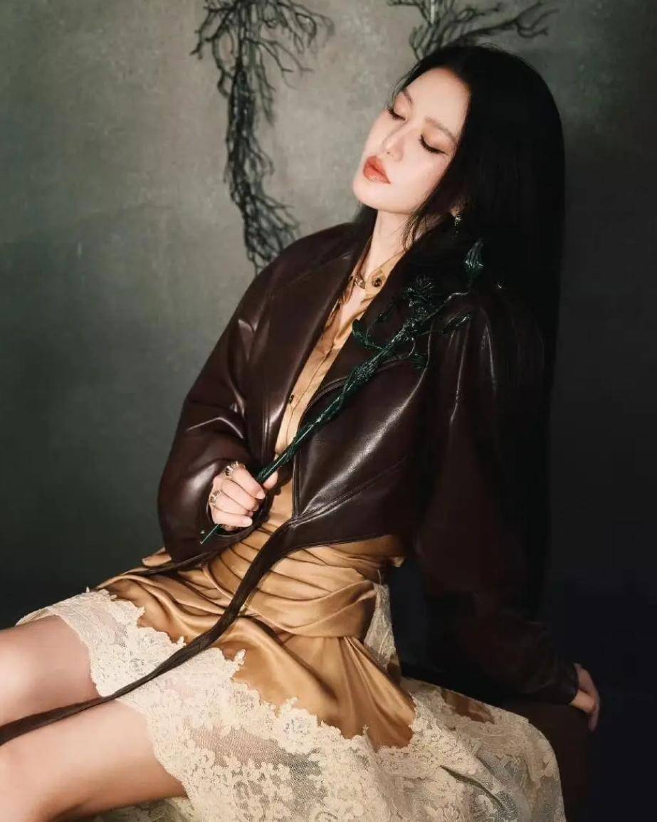整套造型相配闲雅,险些不要太合适,加上她魅惑的眼光,让东说念主看着别有一番韵味。