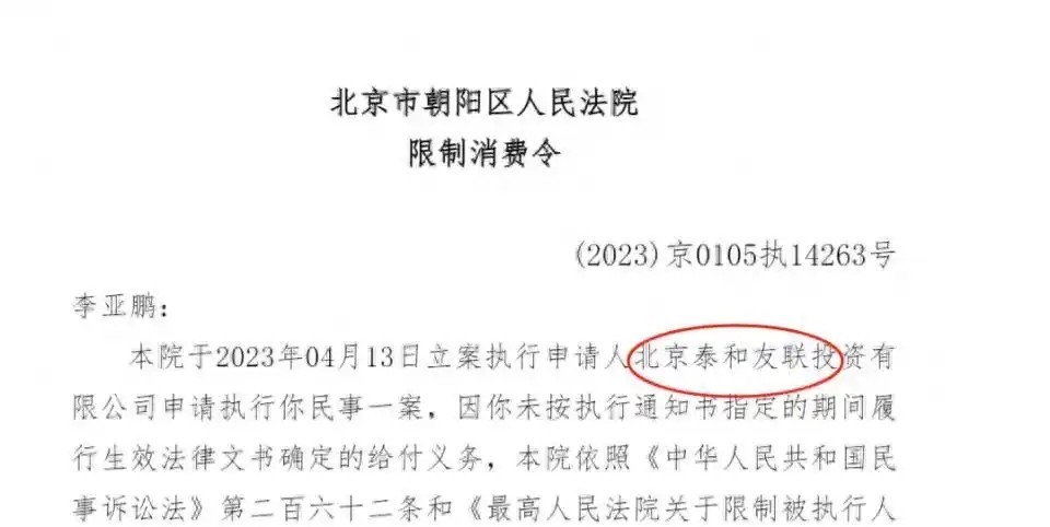 这件事让李亚鹏亏欠惨重,况兼他后续被联接方告上法庭,他被判决向联接方支付4000万元以及上千万利息。