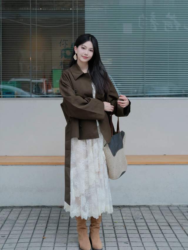 在南边城市天气比拟温暖,格外是白昼出太阳的本事,十足不必把我方裹得严严密实的过于粗重,反而顺利遴荐一件卡其色的长款风衣外衣,搭配上一条高腰收腰的连衣裙,就能很好地呈现出高挑纤瘦的体魄比例。同期使得穿搭者秒变成气质女神。