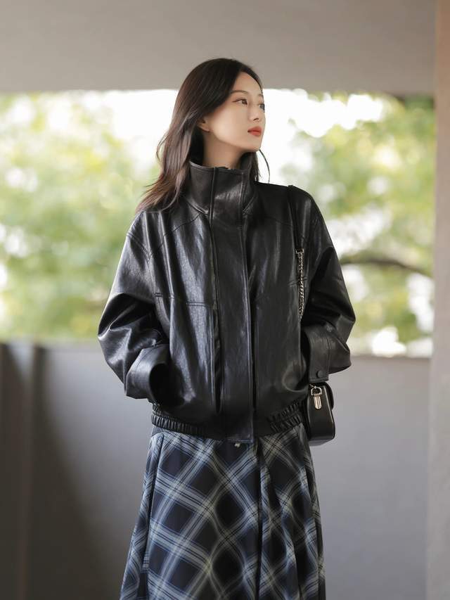 思要我方的造型有一种酷飒的气质风,可以遴荐一件玄色的皮衣外衣,天生就有一种反水的视觉成果,然则咱们一定要详尽一下举座的气质感,是以推选你遴荐格纹的伞状半身裙来组合,刚柔并济的穿衣造型能,让你看起来有着不一样的前锋气质感。