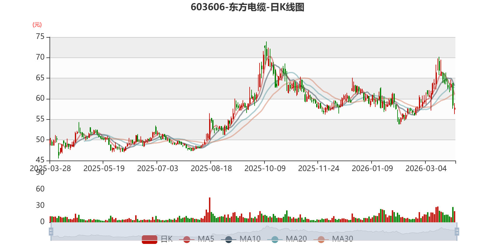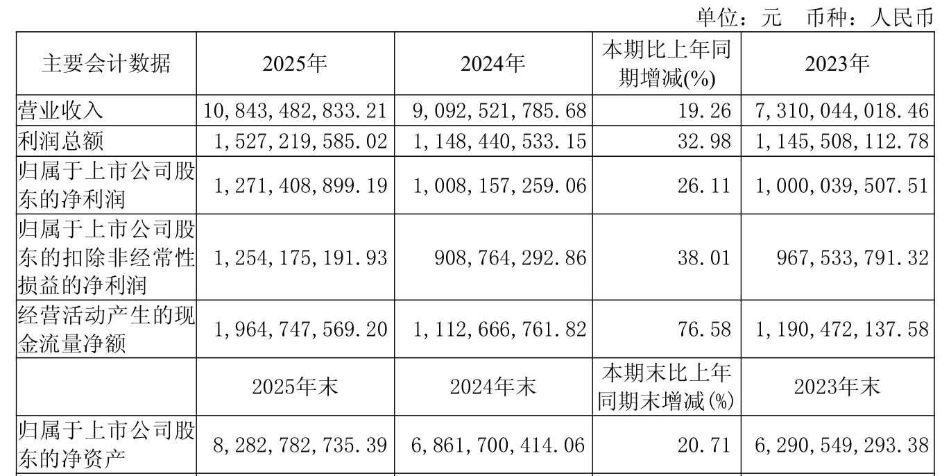 中证智能财讯东方电缆(603606)3月28日线路2025年年度论说。2025年,公司竣事营业总收入108.43亿元,同比增长19.26%;归母净利润12.71亿元,同比增长26.11%;扣非净利润12.54亿元,同比增长38.01%;诡计举止产生的现款流量净额为19.65亿元,同比增长76.58%;论说期内,东方电缆基本每股收益为1.85元,加权平均净钞票收益率为16.83%。公司2025年度分派预案为:拟向举座鼓吹每10股转2股,派现5.6元(含税)。