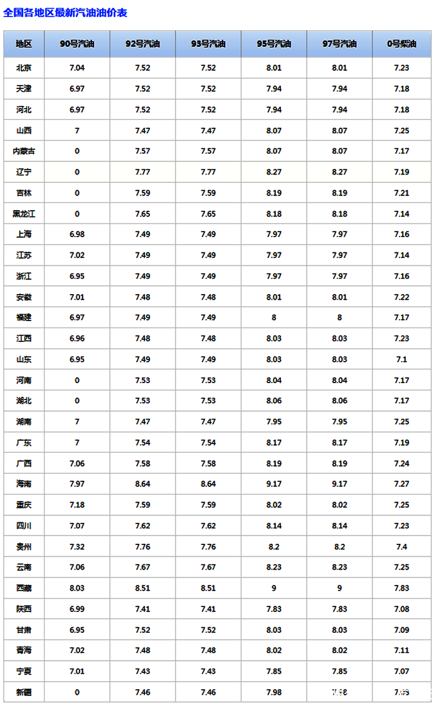 附:世界各省市加油站92,95号汽油以及0号柴油价钱(仅供参考)