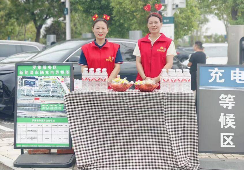 大墅、宁国、帝王、丰乐等做事区在充电桩隔邻搭建“暖心补给站”和休息区,为列队恭候充电的司乘免费提供矿泉水、零食、定制帆布包及充电指引等做事,营造了温馨适意的出行氛围。